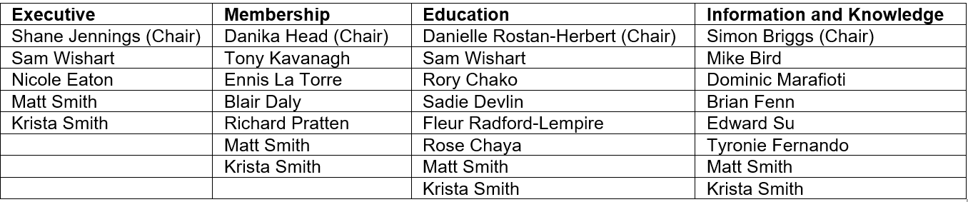 The new Board members introduced in the last newsletter are settling in well and have been assigned to a TEFMA Committee.  The Committee composition is: