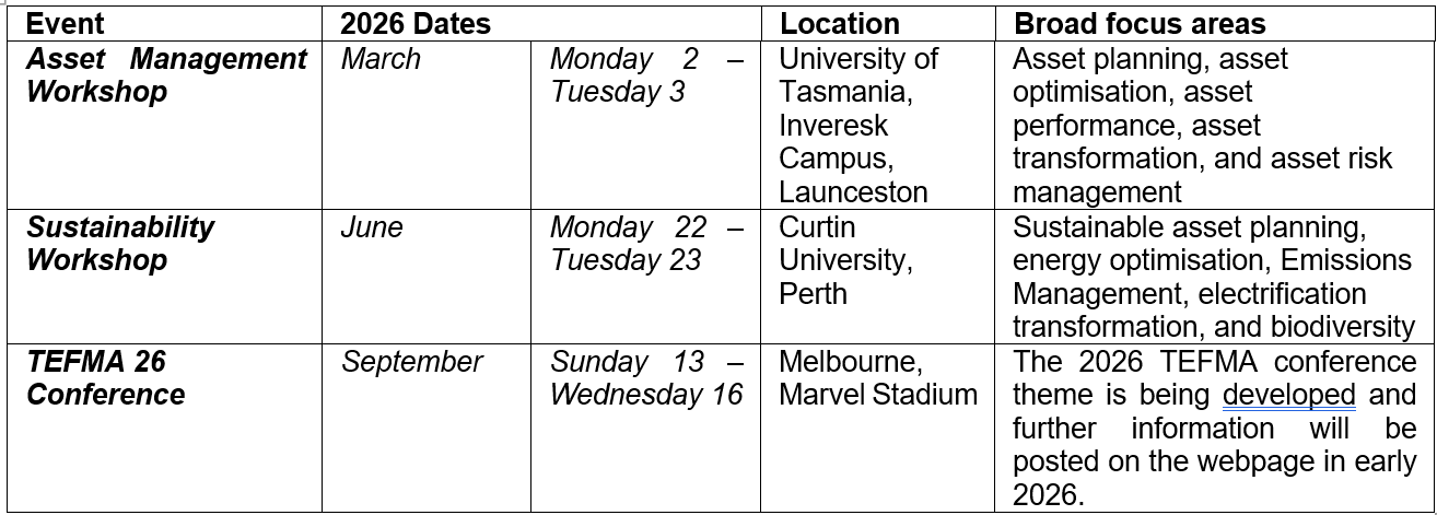 We are reviewing all feedback received following the Conference to ensure learnings inform the success of future TEFMA events.  The Education Services Committee has already started making arrangements for the 2026 workshops and the TEFMA 26 Conference in Melbourne next September.